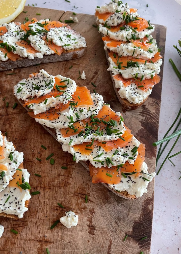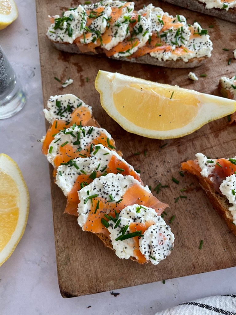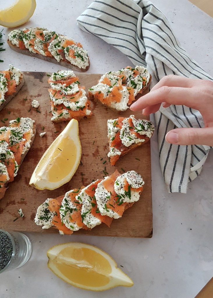 Bruschettas express au saumon fumé, au fromage frais et aux graines de pavot