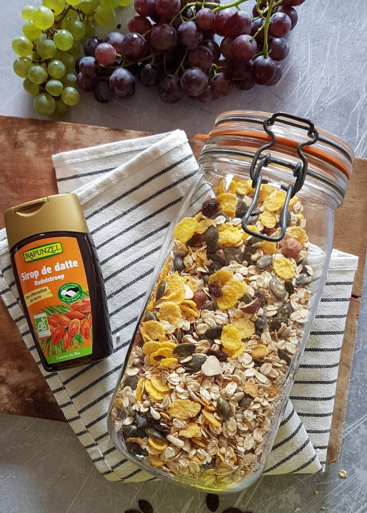 Pour sucrer délicatement et naturellement ce petit-déjeuner gourmand et nutritif, j’ai utilisé le sirop de dattes de Rapunzel, qui apporte des arômes fruités. Les dattes proviennent du commerce équitable et sont fournies par les partenaires de Rapunzel en Tunisie.