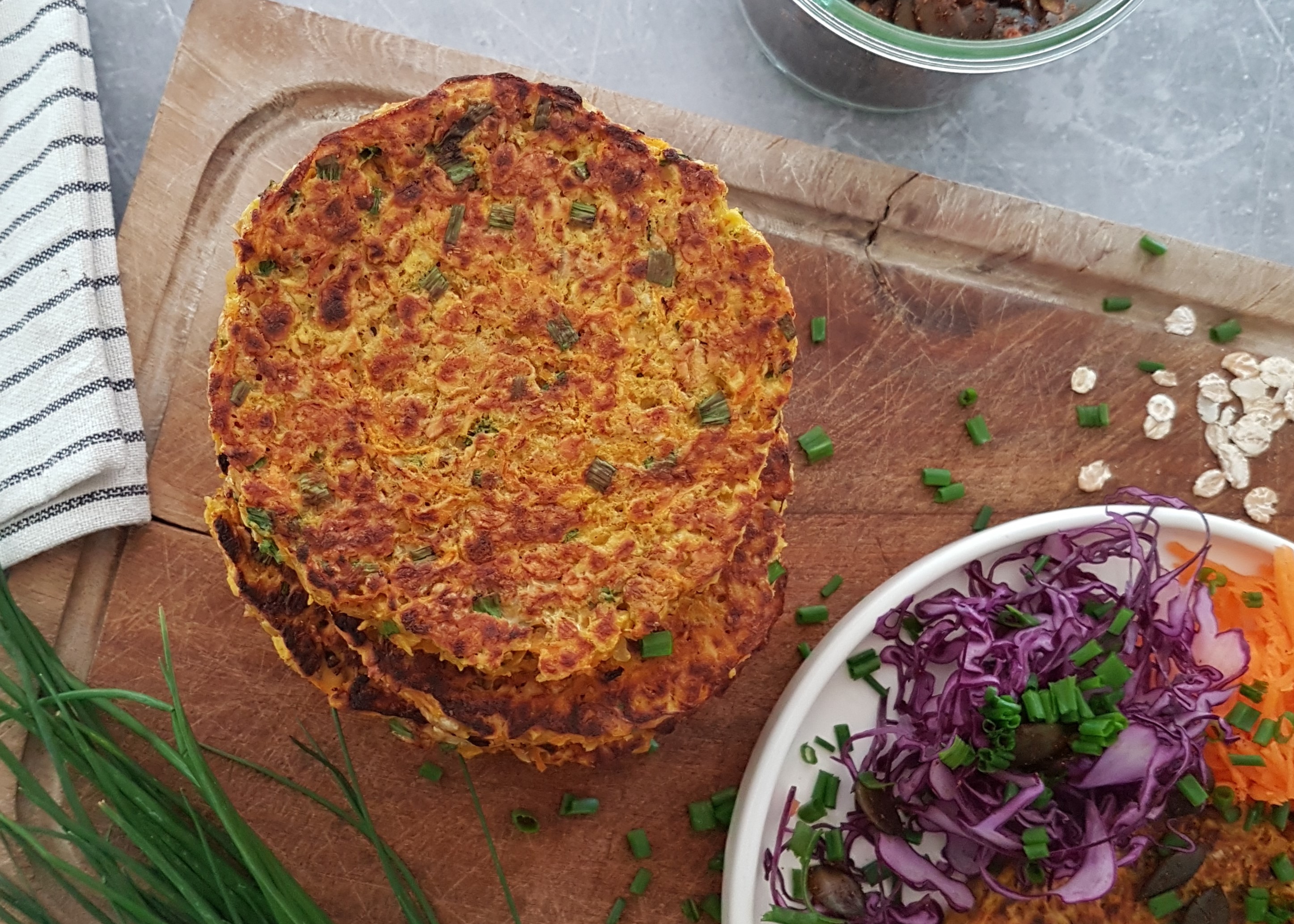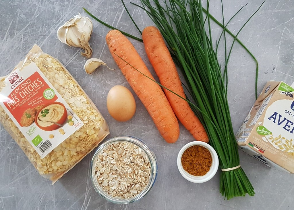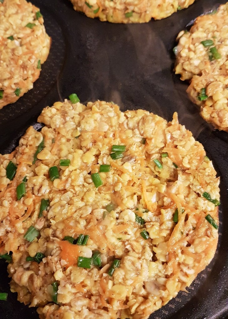 Galettes végétales de céréales, légumineuses et carottes au curry