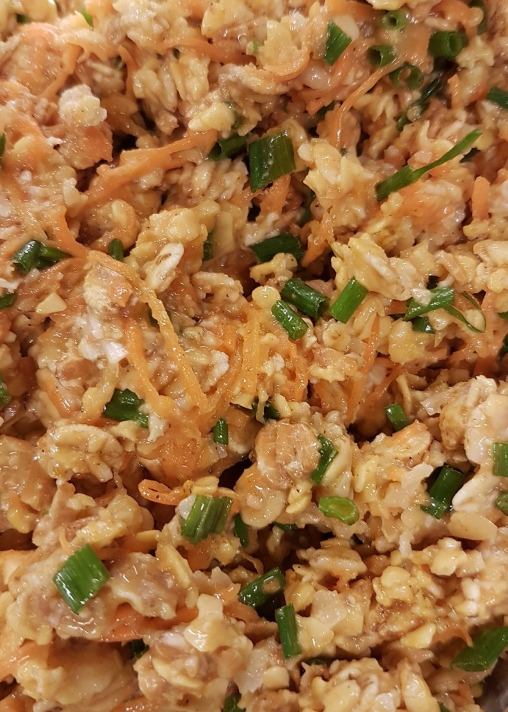 - Laver la carotte, la râper grossièrement et l’ajouter aux flocons.