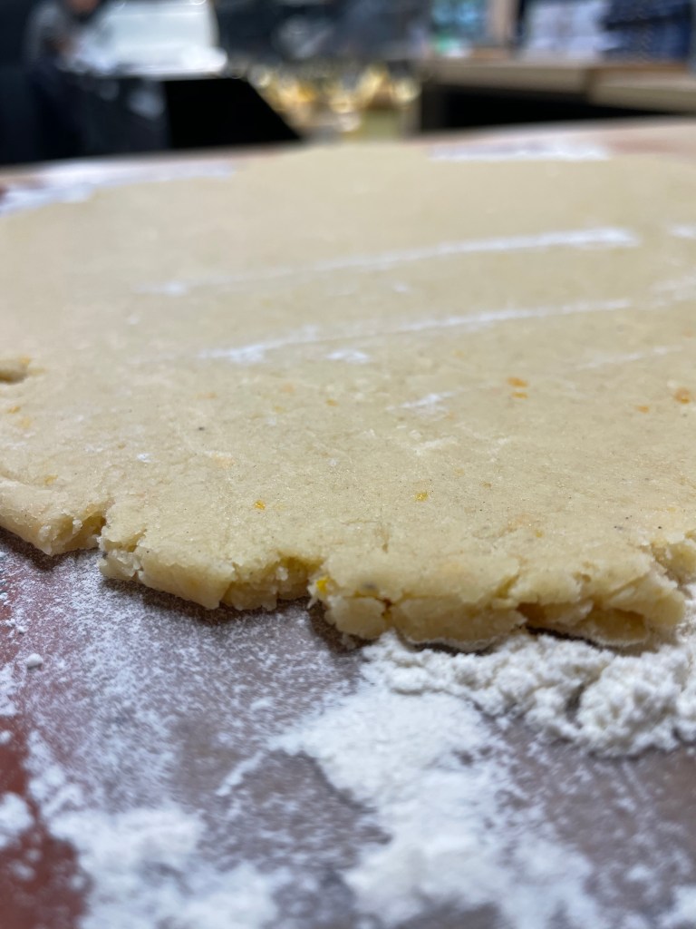 - Ajouter le jaune d’œuf battu et la crème liquide, puis travailler jusqu’à obtenir une pâte homogène.
