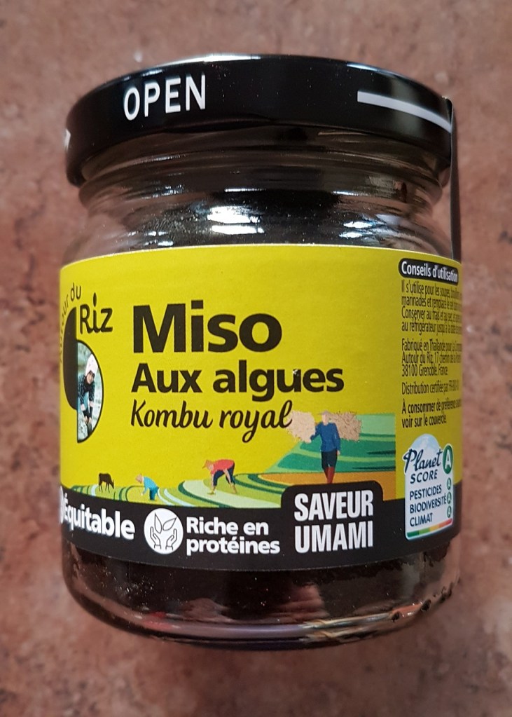 - Le miso à l’algue Kombu, que j’ai choisi pour cette recette parce qu’il est tout nouveau et qu’il m’a immédiatement attirée