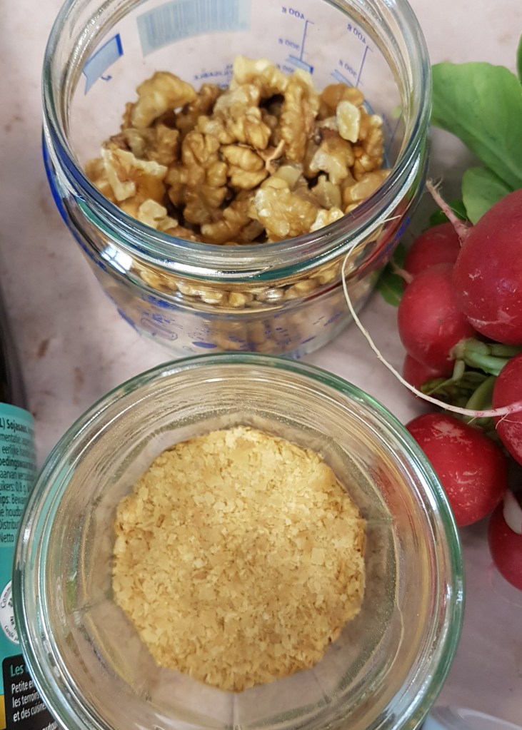 La levure maltée est un ingrédient indispensable qui apporte non seulement du goût, mais surtout de la cohésion et de la consistance aux terrines végétales. Lors du temps de repos de 4h, elle absorbe l’excédent de liquide et solidifie la terrine.