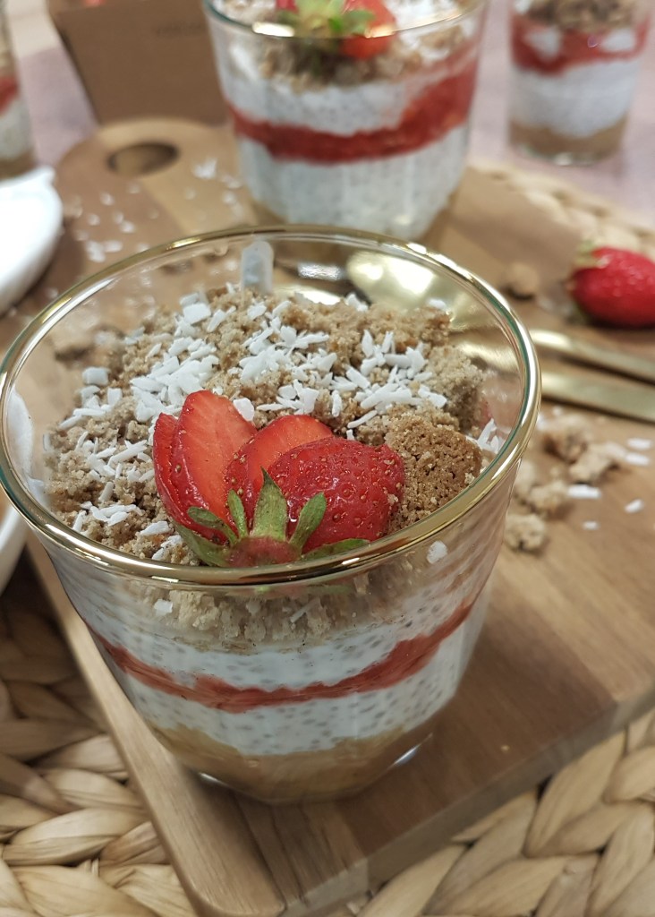 - Au moment de servir, ajouter les sablés, la noix de coco râpée et une fraise !