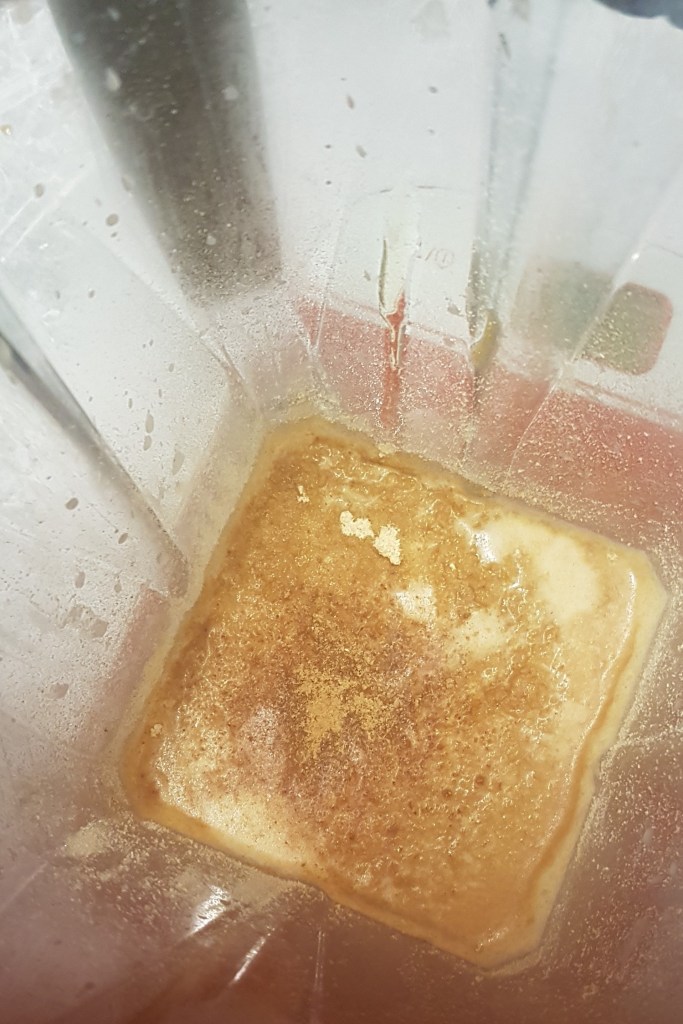 - Transvaser dans un mixeur et ajouter la purée de noisette, le miel, l’ashwagandha et la cannelle.
