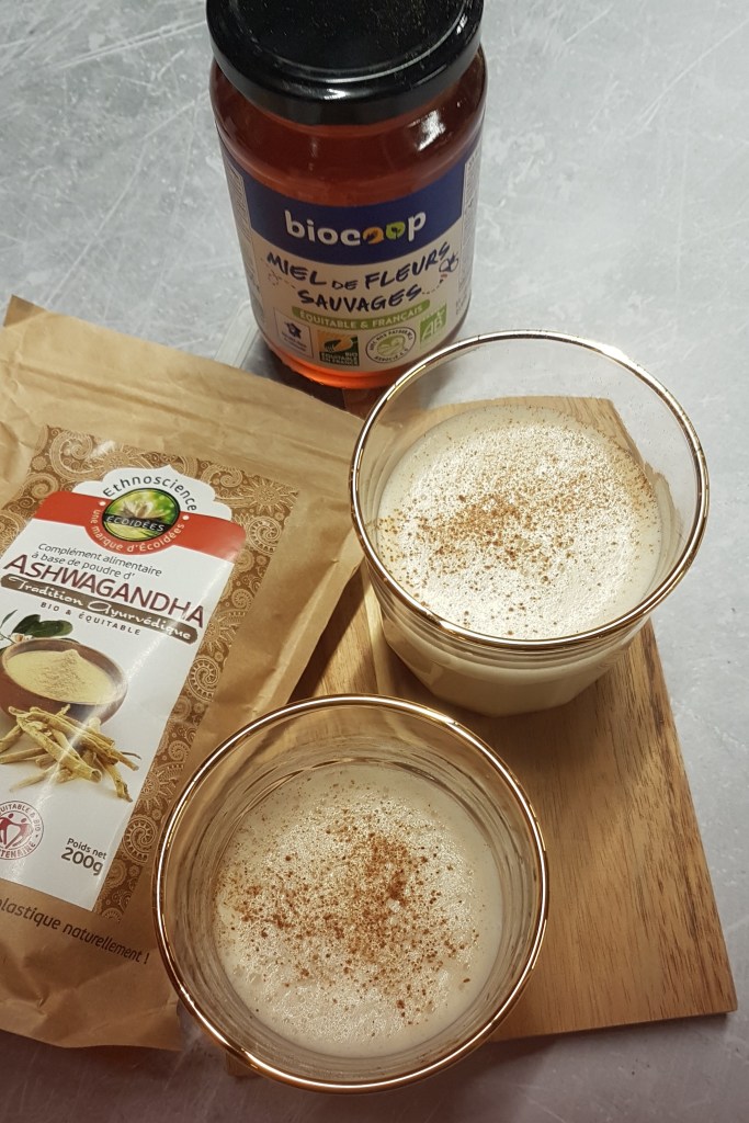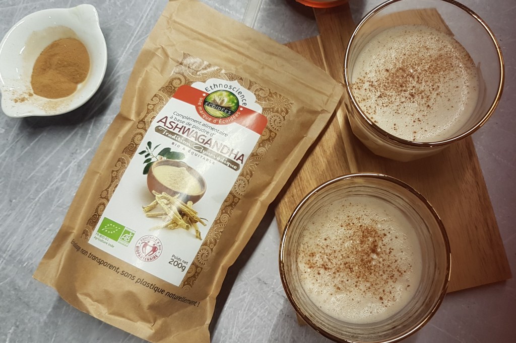 Pour accompagner mes délicieux Palets bretons au sarrasin et au beurre demi-sel, voici une boisson légère et gourmande à base d’ashwagandha, un superaliment qui contribue à soutenir l’organisme en période d’anxiété et de tension nerveuse.