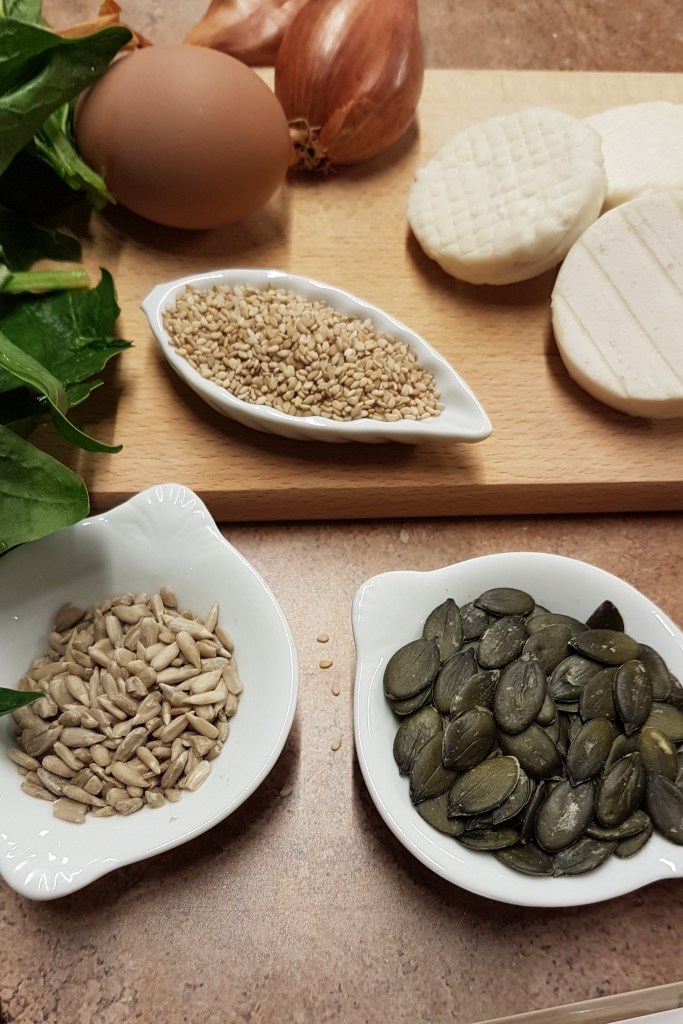 En plus de joliment décorer mes paniers feuilletés, elles leur apportent de la mâche : torréfiées au four, elles croquent délicatement sous la dent et se marient à merveille au fondant des épinards.