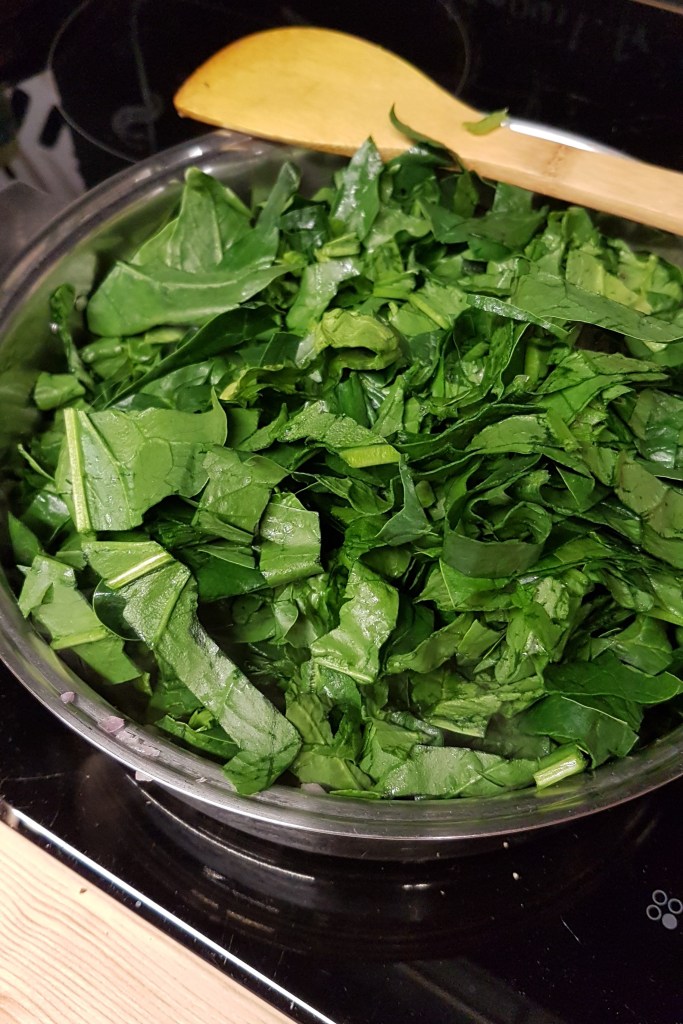 - Ajouter les épinards et cuire trois à quatre minutes à feu doux.