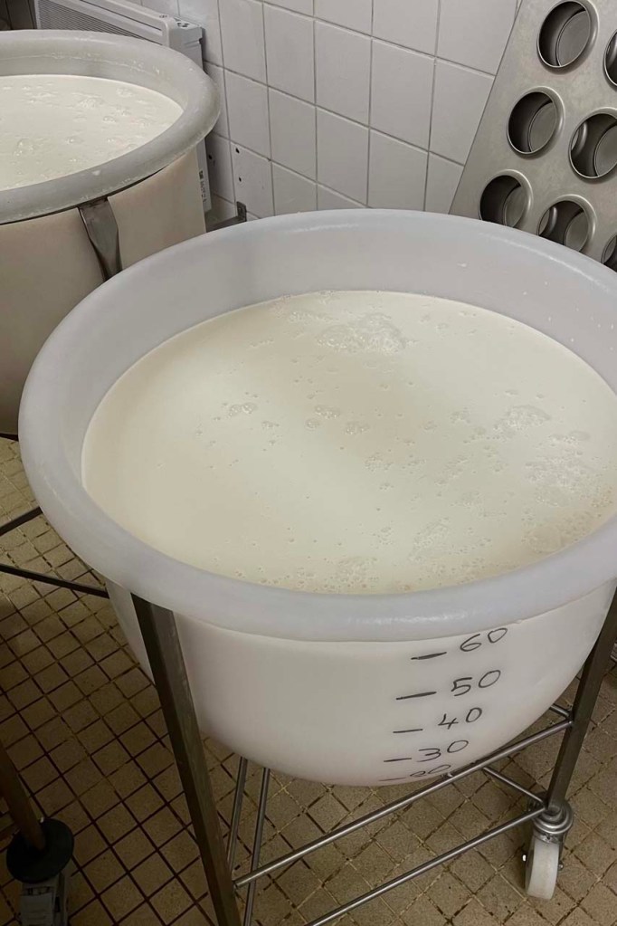100% du lait collecté par les Loriot est transformé à la ferme. « On transforme un peu plus de 200 litres de lait tous les jours, même le dimanche, et on suit un planning de fabrication pour respecter les commandes de nos distributeurs et nos marchés. »