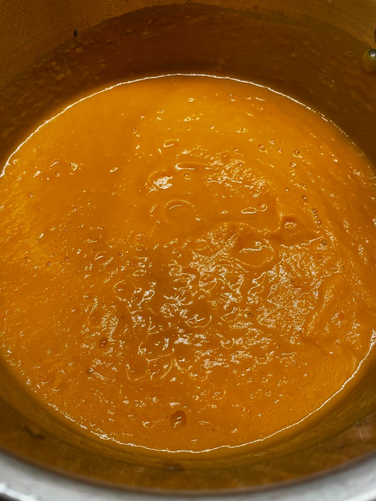 Une fois les légumes cuits, il ne reste plus qu’à les mixer finement pour obtenir une texture veloutée et onctueuse, sans morceaux.
