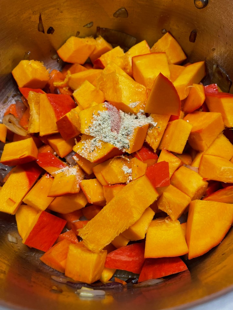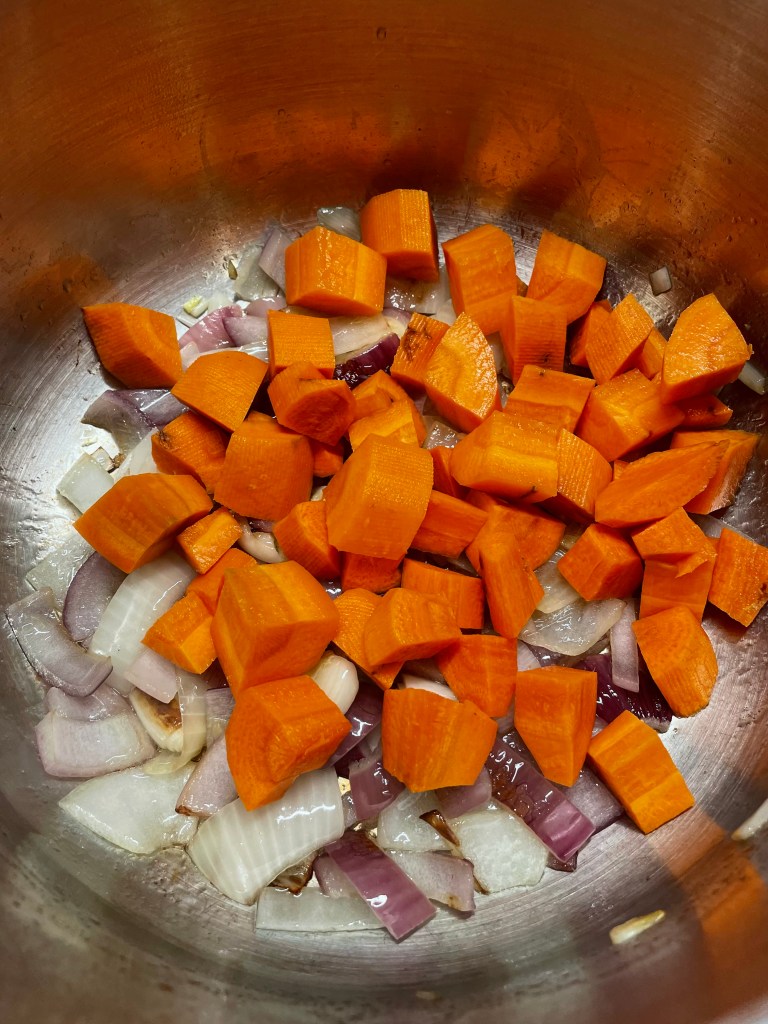 - Faire rissoler les carottes et le potimarron dans le faitout quelques minutes.