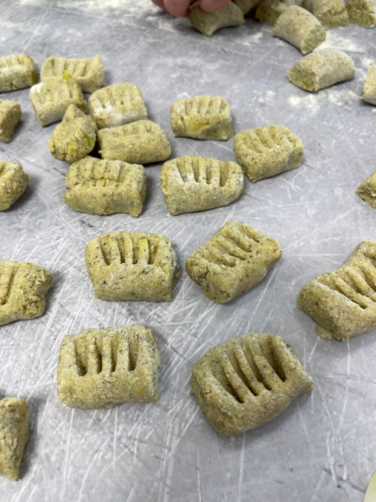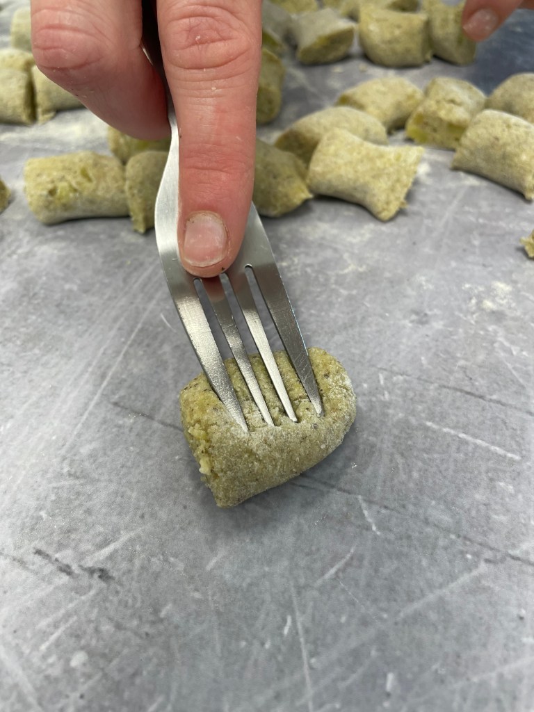 Le façonnage des gnocchis est vraiment très simple : il suffit de réaliser une boule de pâte, puis de la façonner en boudins et enfin en petits tronçons. La touche finale ? Le coup de fourchette pour donner aux gnocchis leur forme traditionnelle (ou presque !).