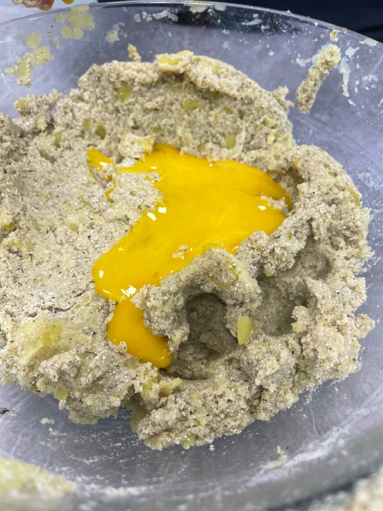 - Incorporer les jaunes d’œufs et pétrir quelques minutes pour obtenir une pâte homogène non collante.