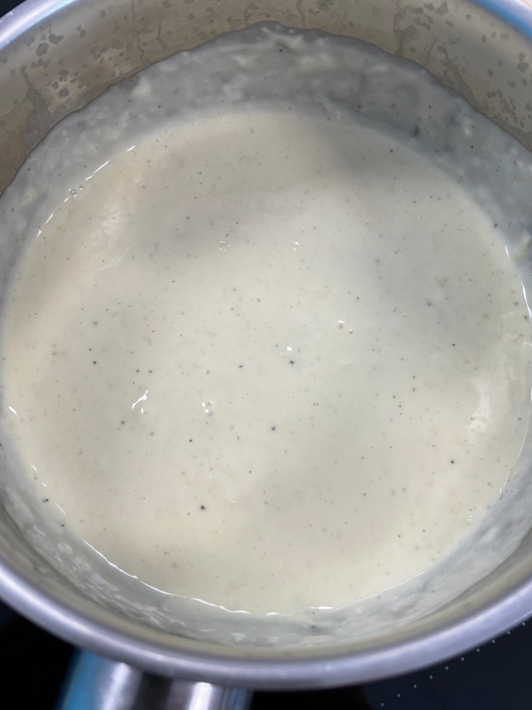 - Dans une casserole, faire fondre le pélardon dans la crème liquide, puis assaisonner et laisser réduire quelques minutes à feu vif. Couvrir et réserver.