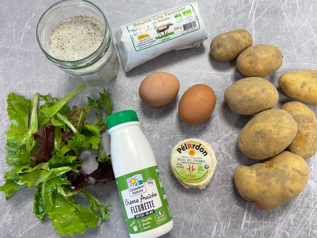 Nous avons utilisé leurs pommes de terre Agria, une variété assez tardive à la peau et à la chair bien jaunes qui est idéale pour préparer des purées, des gratins…