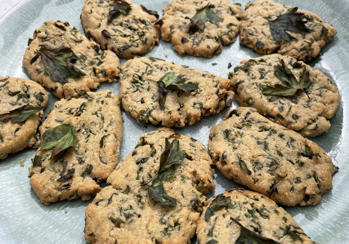 À la demande de nombre d’entre vous, voici la recette des petits sablés croustillants que vous avez pu déguster lors de notre Fête du jardin vivant au Fenouil Sargé : des biscuits apéritifs bien beurrés, très parfumés grâce au parmesan et aux herbes fraîches.