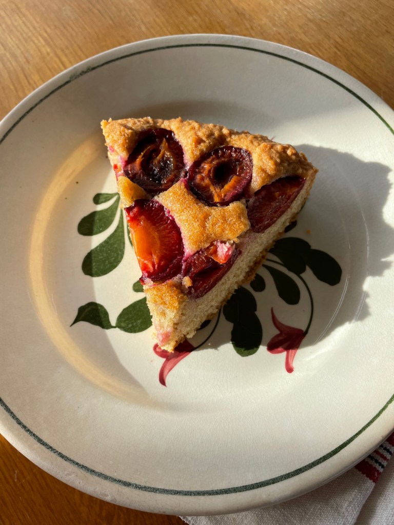 Et la touche finale : juste avant d’enfourner ce moelleux aux prunes et aux amandes, pensez à saupoudrer une pincée de sucre sur les fruits pour les caraméliser !