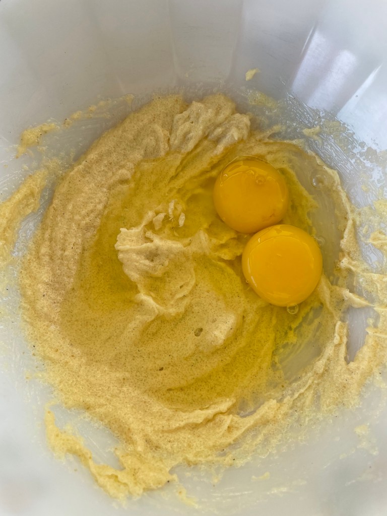 - Dans un cul-de-poule, blanchir le beurre, le sucre et le sucre vanillé.