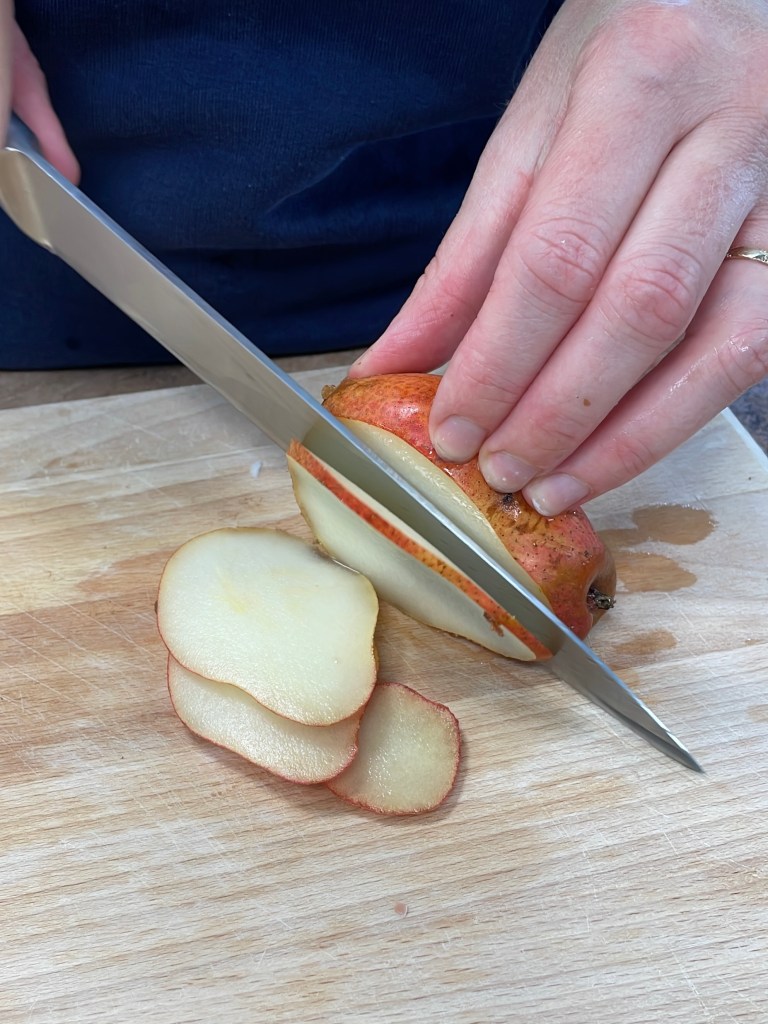 Nous avons utilisé des poires Williams rouges, mais toutes nos variétés conviendront : Guyot, Williams jaune, Comice, Sweet Harrow… en fonction de la disponibilité en rayon au fil de l’automne.
