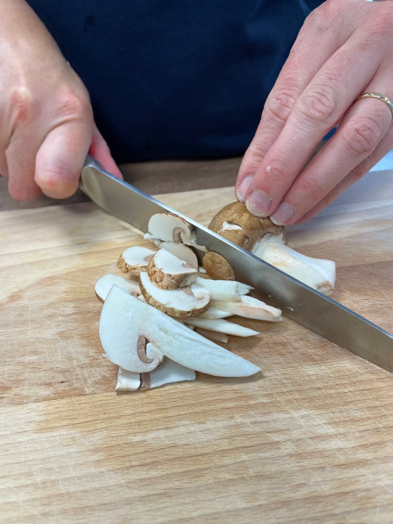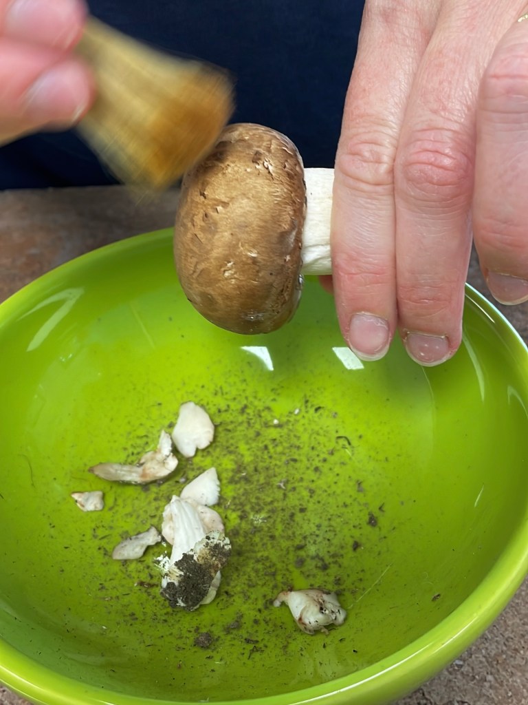 - Nettoyer les champignons à l’aide une brosse ou d’un pinceau, puis les émincer finement.