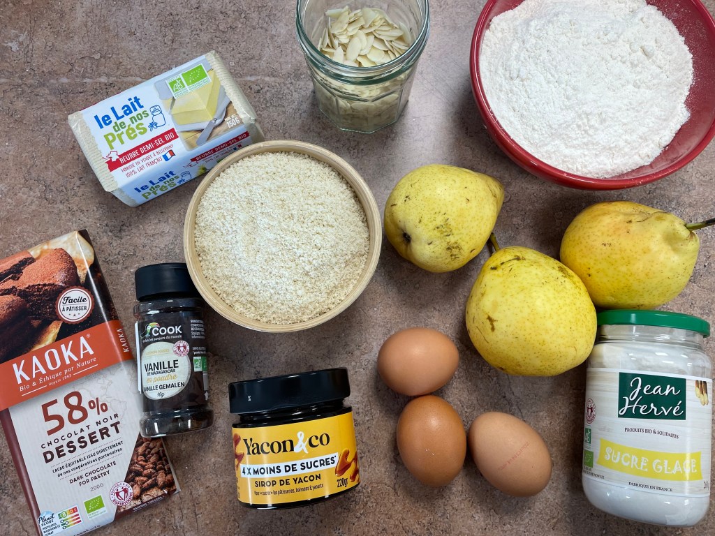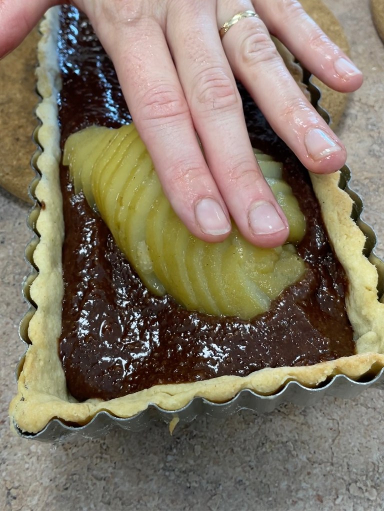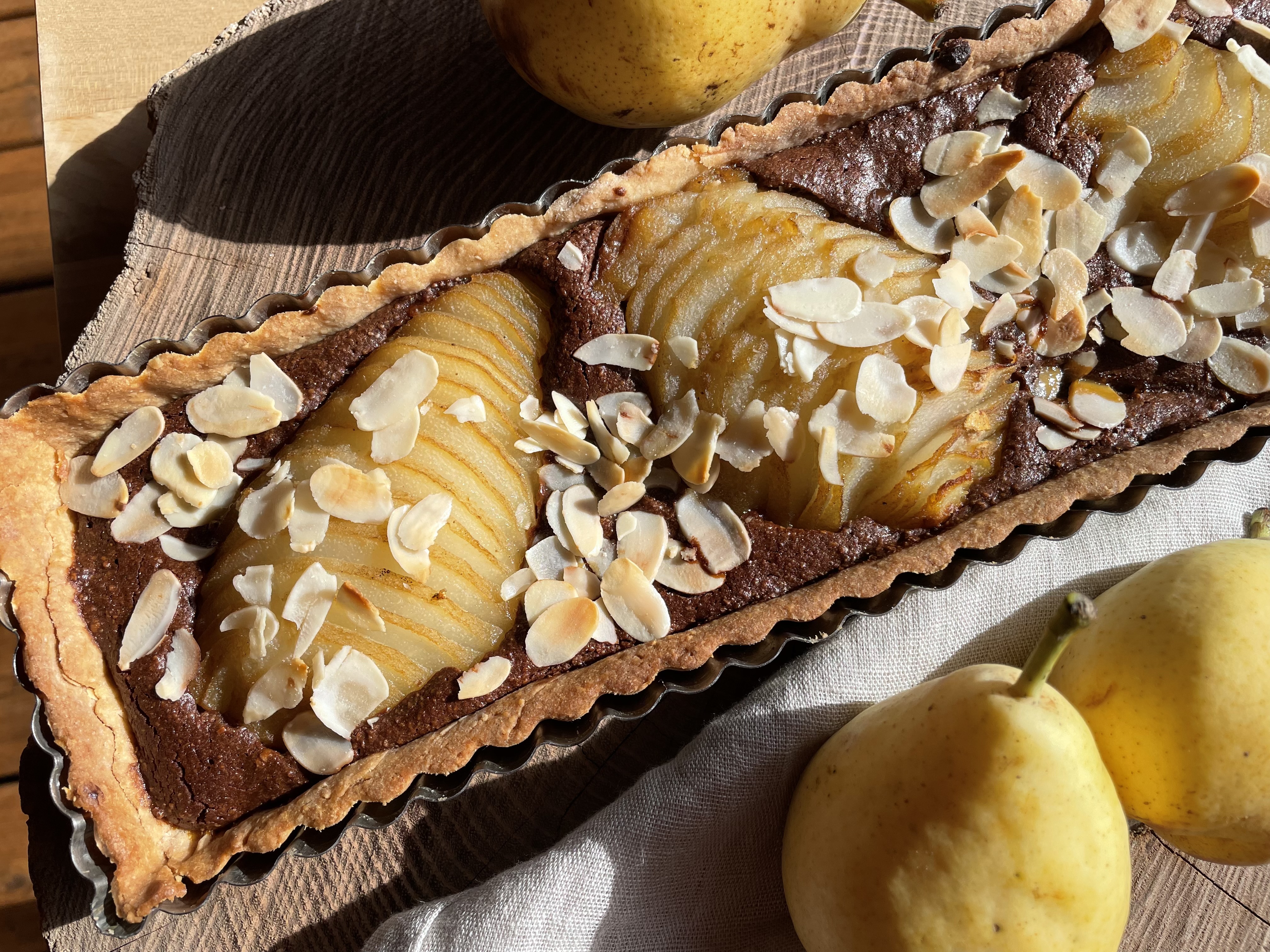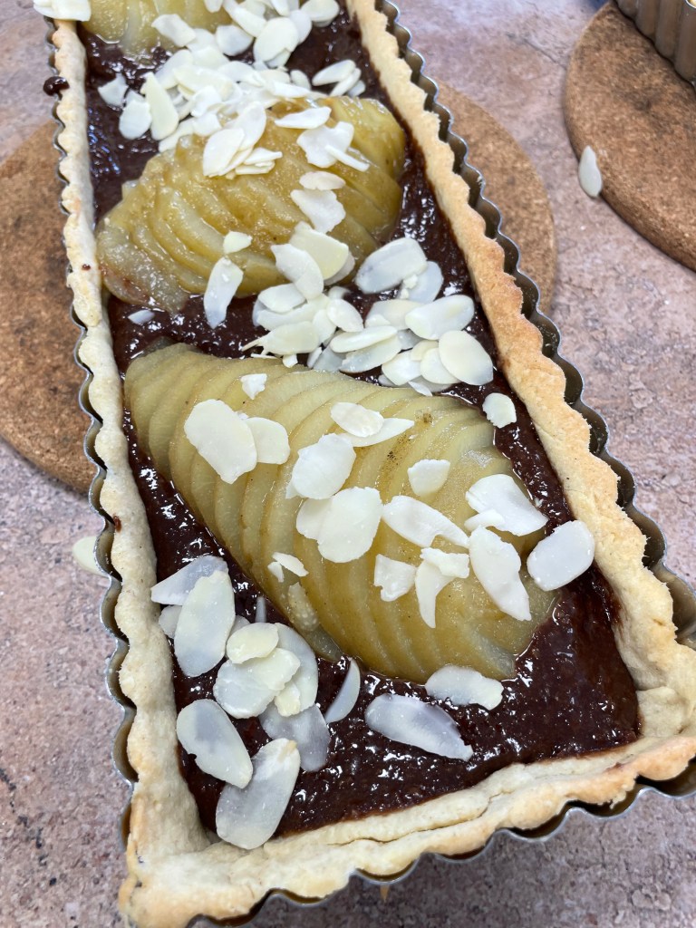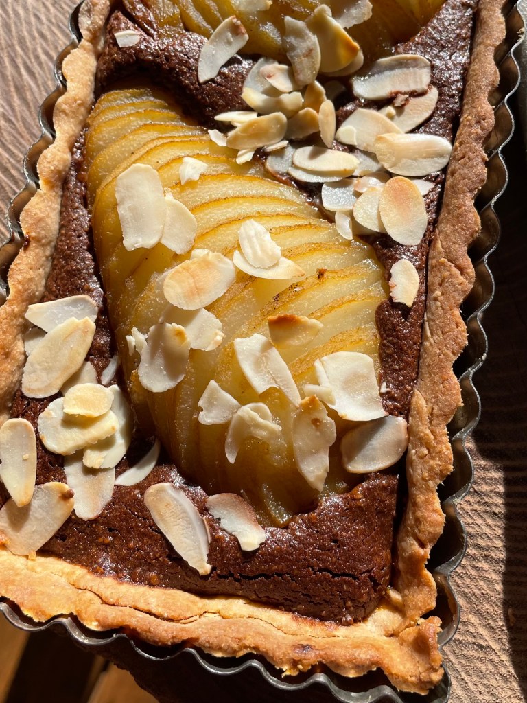 Tarte Bourdaloue, ou tarte amandine aux poires et au chocolat