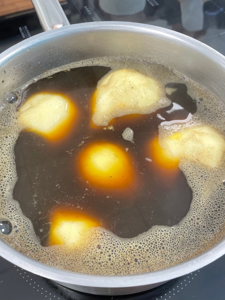 - Pocher les poires : dans une casserole, porter à ébullition l’eau, le sirop de yacon et la vanille.