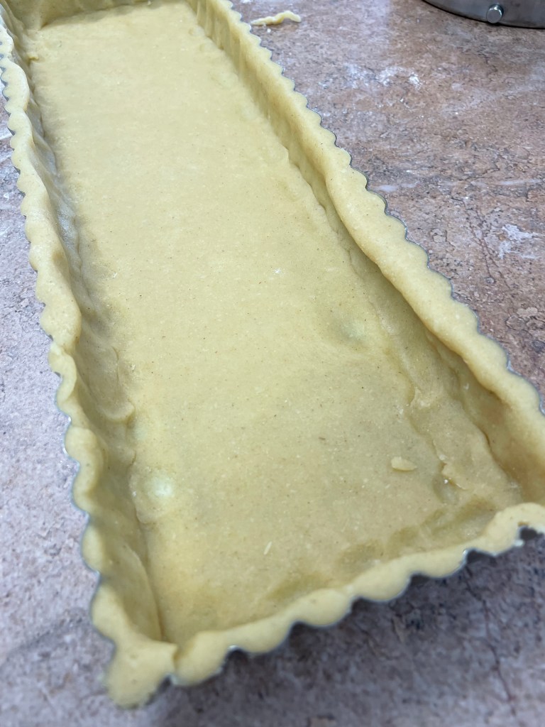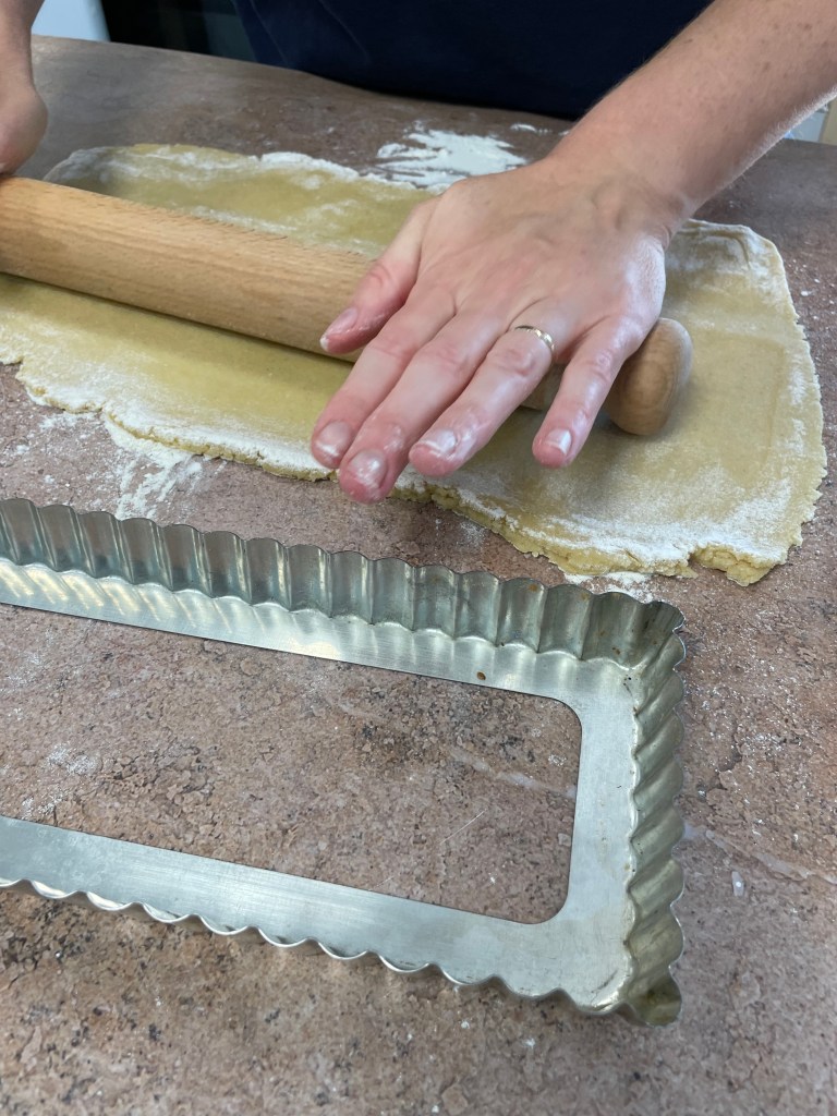 Nous insistons : la pâte sucrée doit reposer une heure au frais avant d’être étalée ! Suivez-bien cette instruction ou vous aurez du mal à foncer votre moule à tarte.