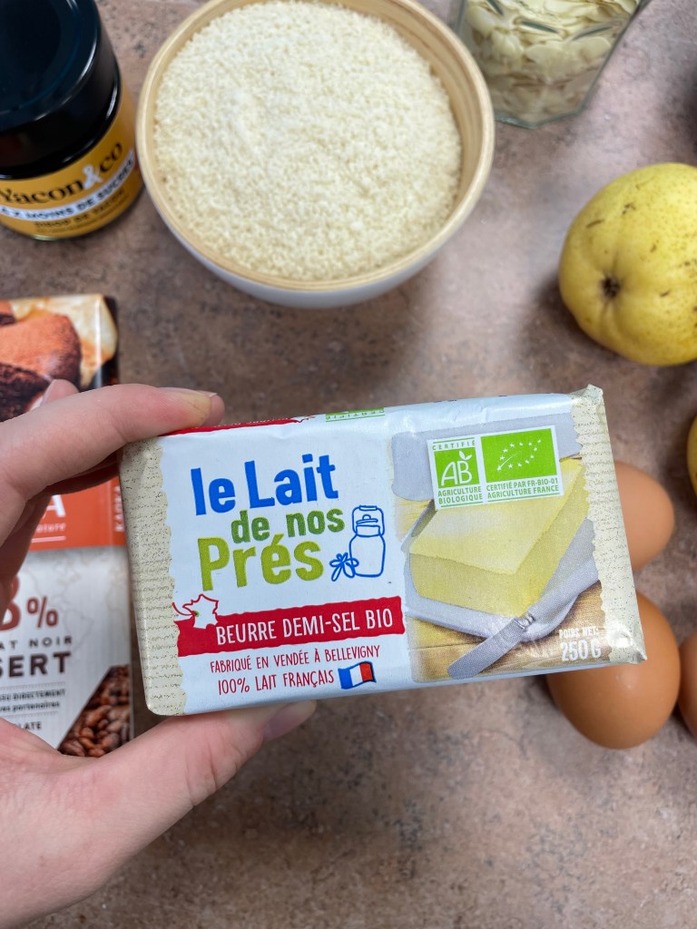 Elle est constituée d’œufs, de beurre, de farine, de sucre et de sel (sauf si vous utilisez directement du beurre demi-sel) et peut parfois contenir de la poudre de fruits secs (amandes, noisettes, pistaches, noix…).