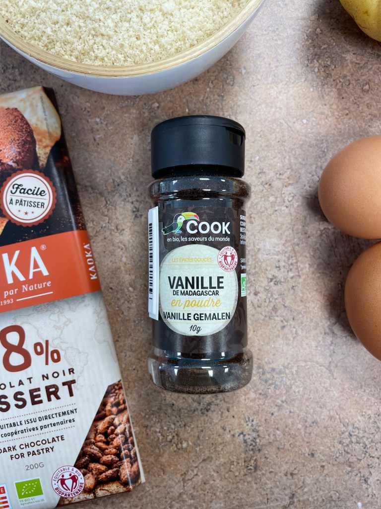 Ici, nous l’avons utilisé dans notre sirop pour pocher nos poires et dans notre crème d’amande : il sucre légèrement ces préparations tout en laissant la vanille et le chocolat prendre le dessus.