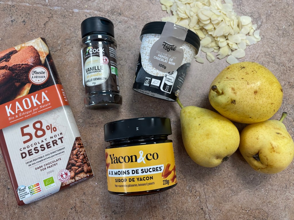 Comme dans notre tarte Bourdaloue, nous avons poché nos poires à la vanille de Madagascar et au sirop de yacon, un produit sucrant naturel à index glycémique bas issu du yacon (ou « poire de terre »), un tubercule originaire des Andes.