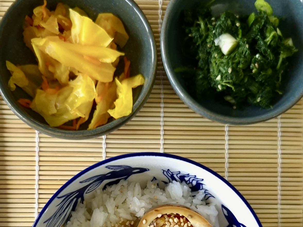 Épinards au sésame et kimchi (banchan)