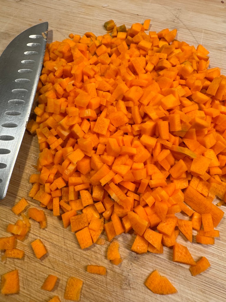 Pour réussir votre soffritto, prenez votre temps au moment de la découpe des ingrédients afin d’obtenir une brunoise fine et homogène ; nous vous parlions de patience, c’est pour cette étape !