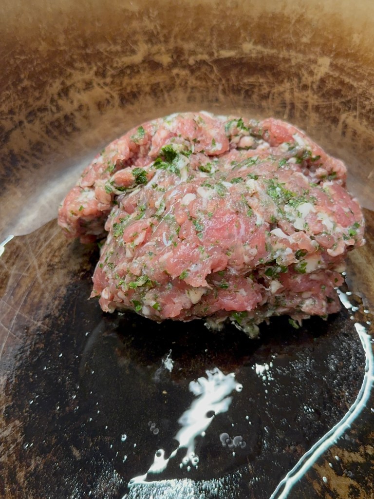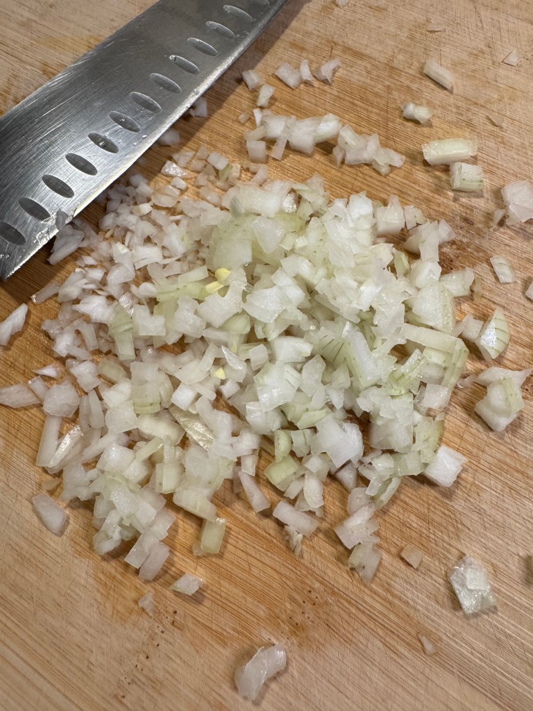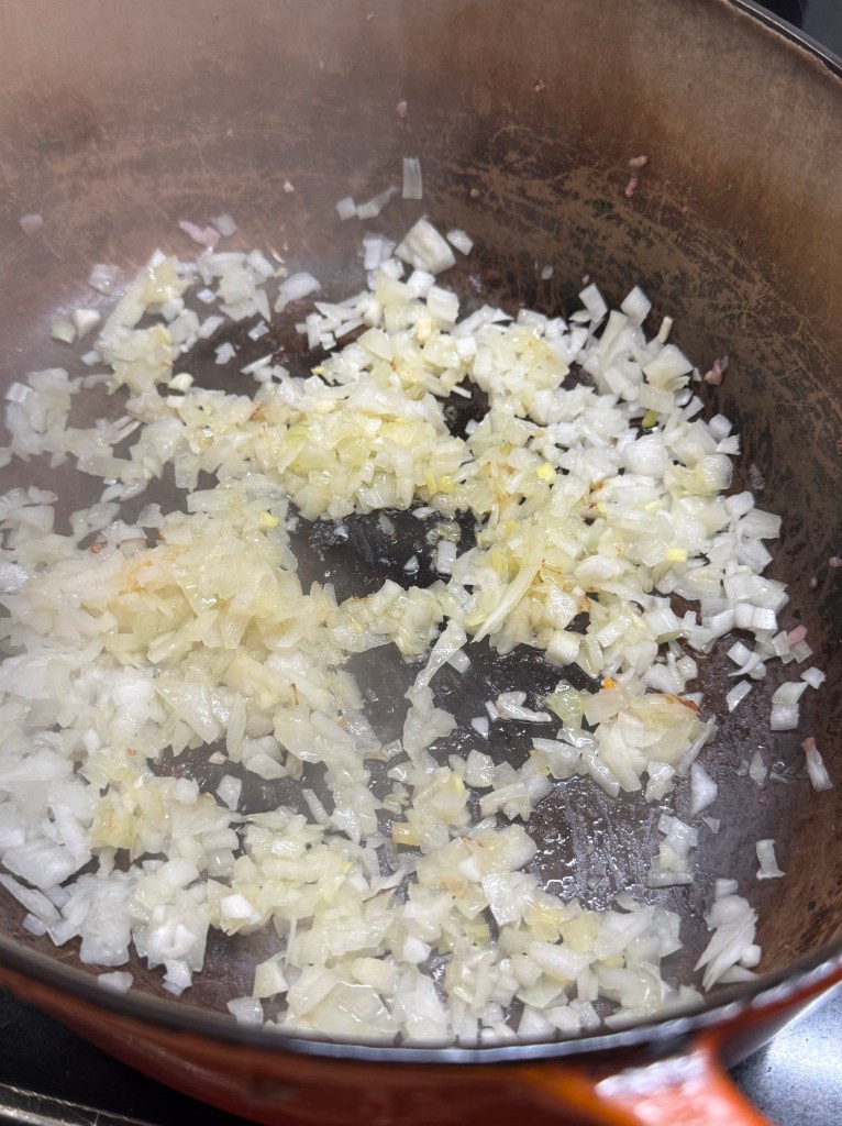 - Faire revenir l’oignon quelques minutes dans les sucs de viande.