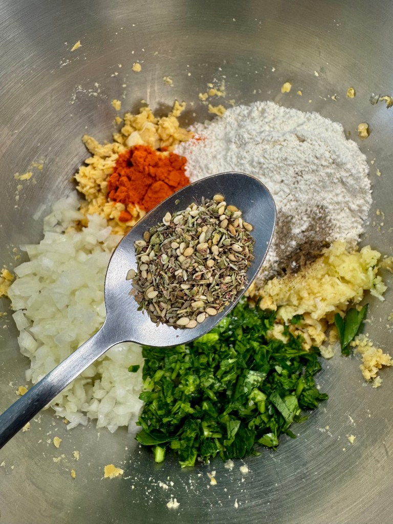La fraîcheur du persil et du citron se marie à merveille avec les saveurs du zaatar, du paprika et du parmesan. À déguster en plat principal, en entrée légère, en pique-nique dans un pain pita avec une sauce au yaourt et aux herbes…