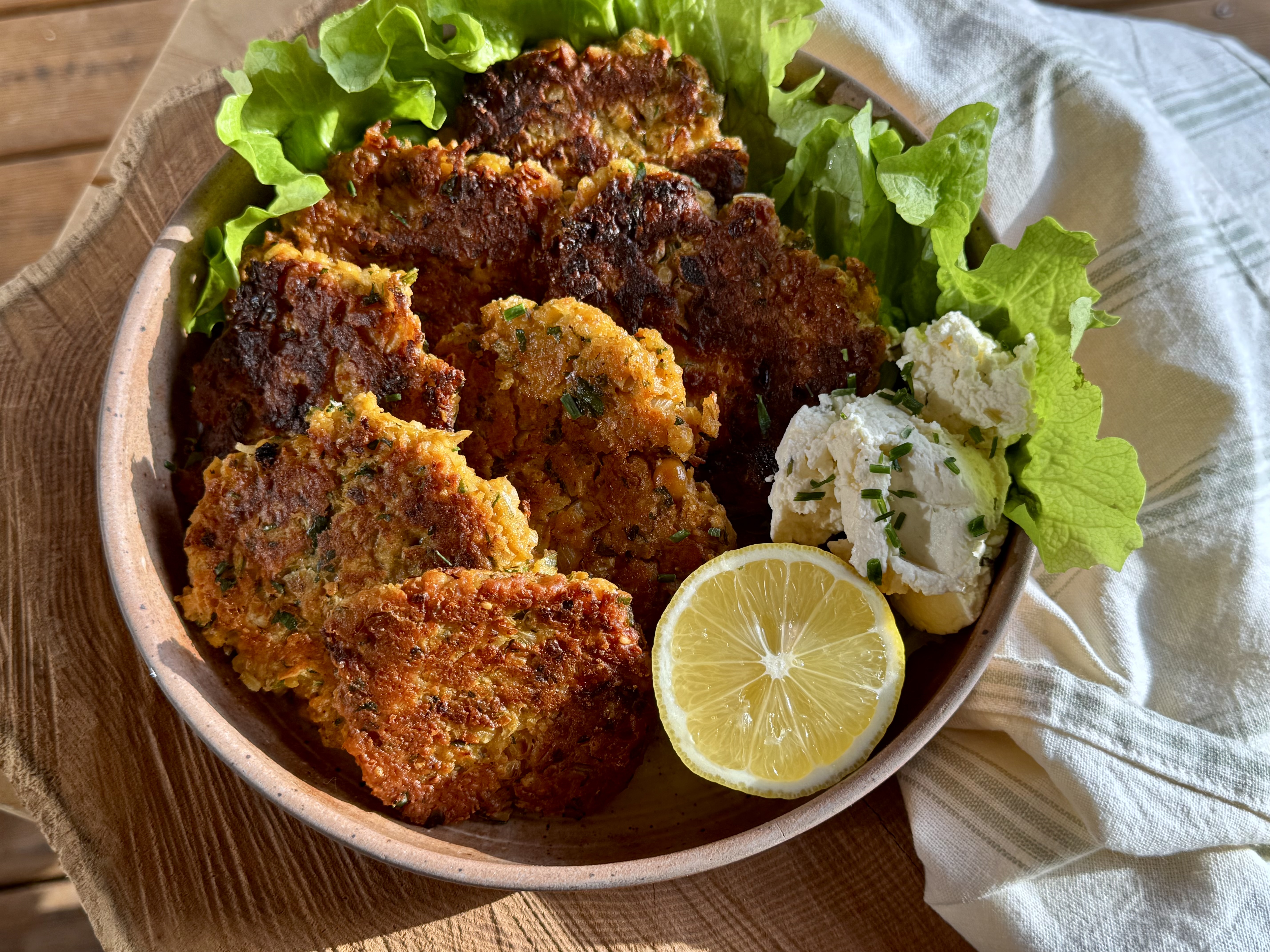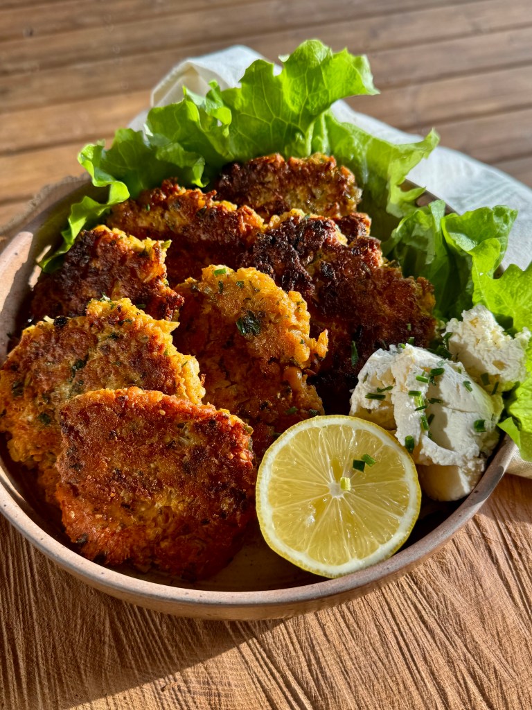 - Déposer les galettes sur un papier absorbant et servir avec de la salade verte, des crudités, du fromage frais aux herbes…