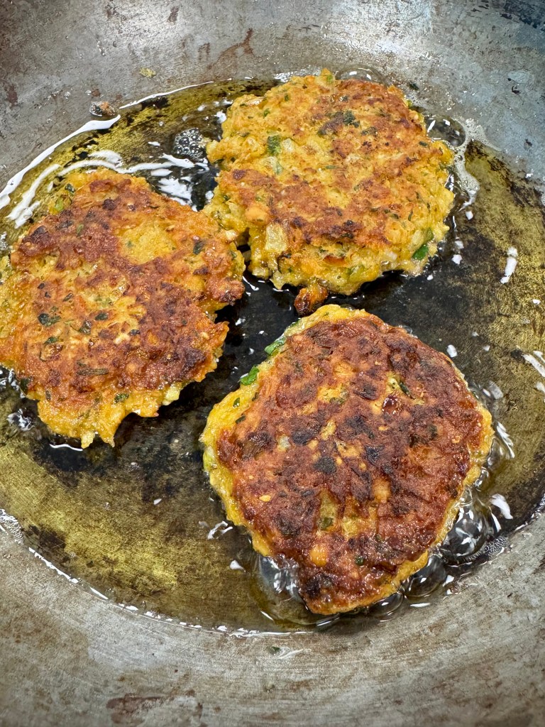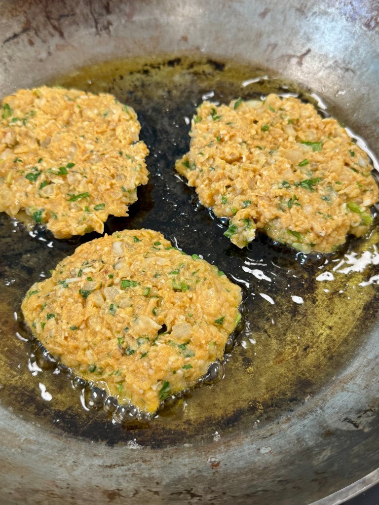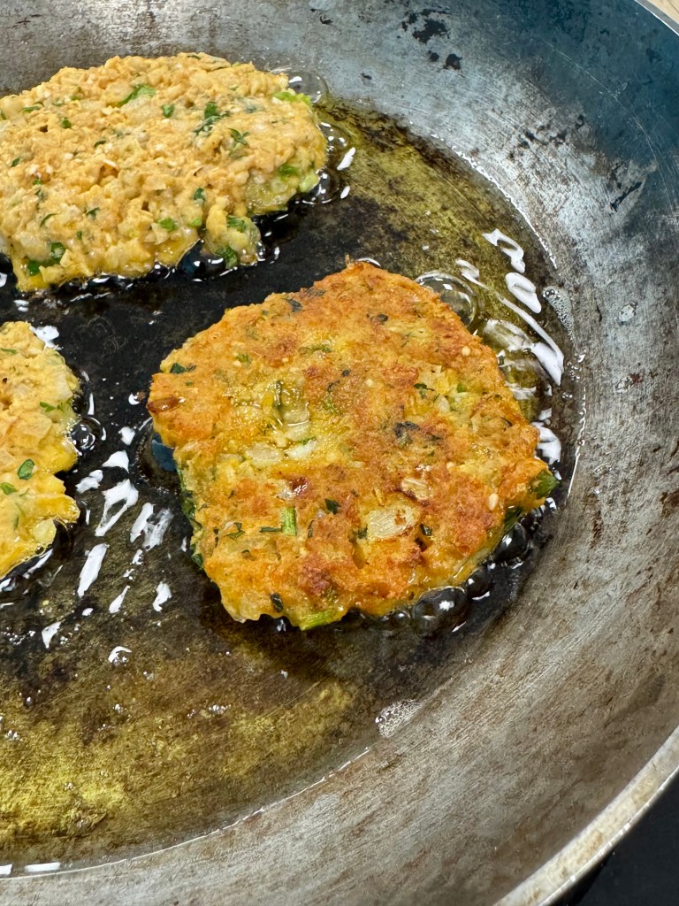 - Former des galettes et les frire 5 minutes par face.