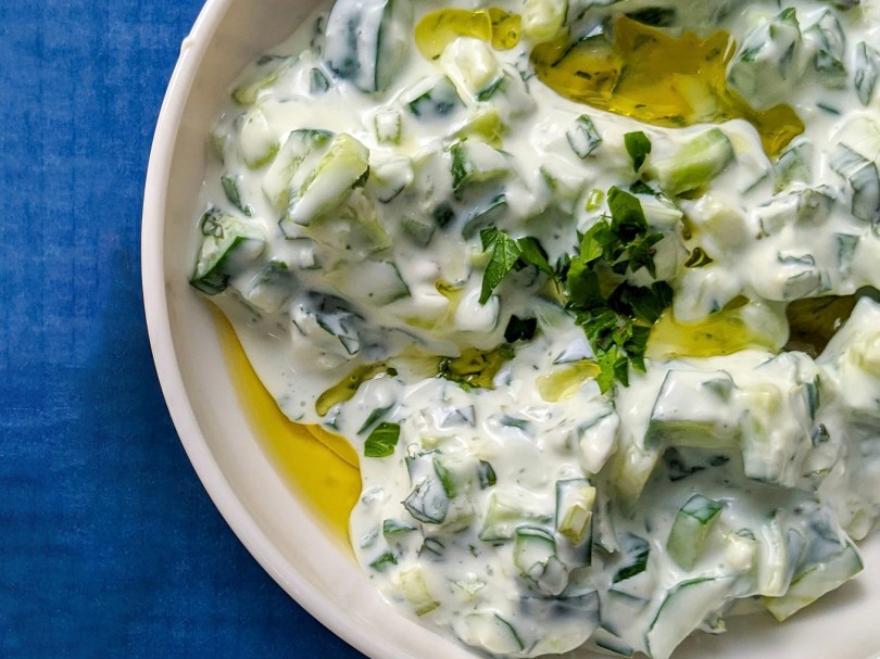 Le tzatzíki est un mezzé de la cuisine levantine qui peut être utilisé comme sauce ou comme entrée. Les recettes sont nombreuses et variées, mais la base de tzatzíki est toujours la même : du yaourt épais, du concombre et des épices.